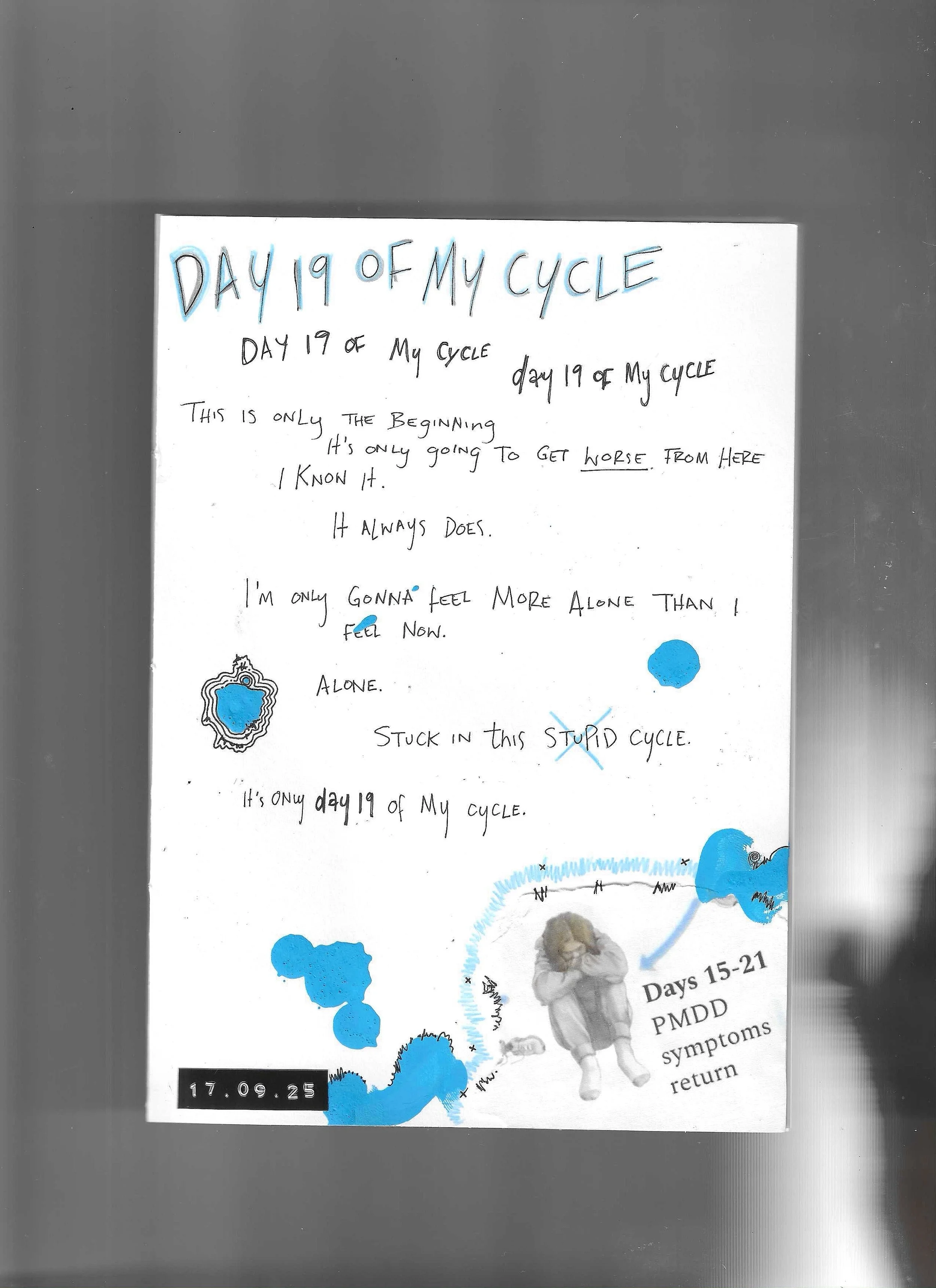 PMDD diaries vol. 2 ~ PMDD diaries vol. 2 ~ PMDD diaries vol. 2 ~ A mixed media zine exploring my struggles during a PMDD episode.